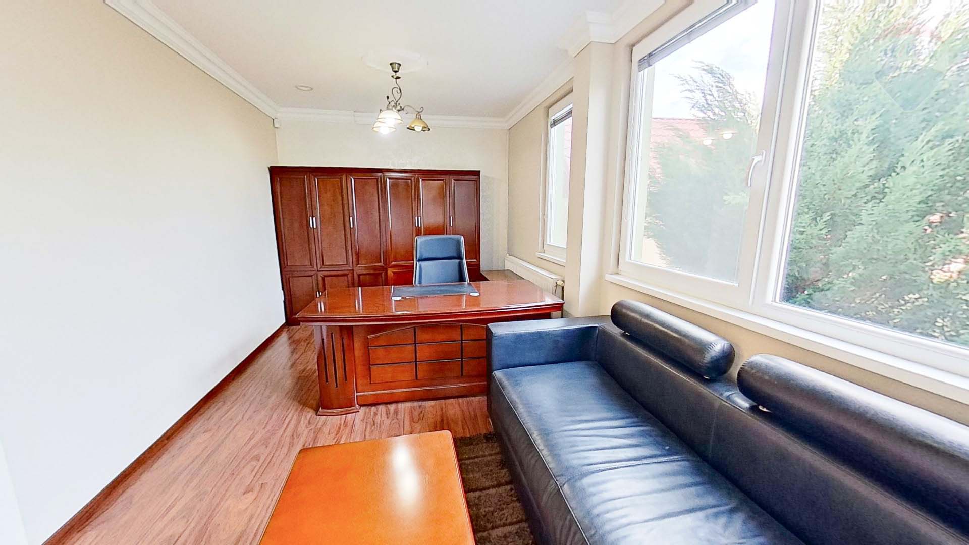 Druhá budova pozostáva z : chodby, veľkej kancelárie, archív, sociálne zariadenie a sprcha, ďalšej spojovacej chodby, dve väčšie kancelárie určené pre vedenie firmy a dve menšie kancelárie pre zamestnancov. S rozlohou 159 m2.